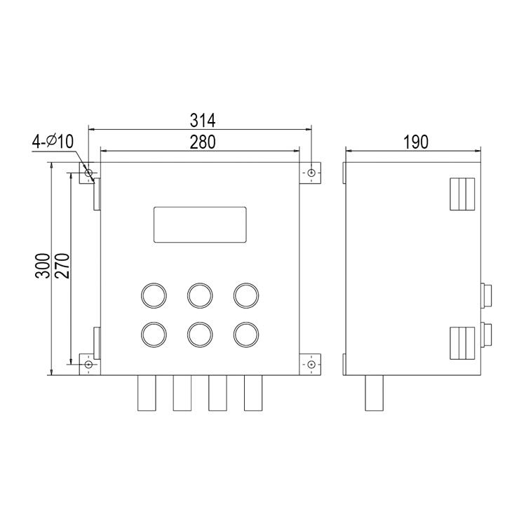 XK3190-Ex-C602G外殼采用鋁合金鑄造成型,外表面噴塑。整體為隔爆腔體型式,正面設有鋼化玻璃視窗,供觀察儀表顯示數據。箱面設有控制操作按鍵。下部為電纜引入接頭。